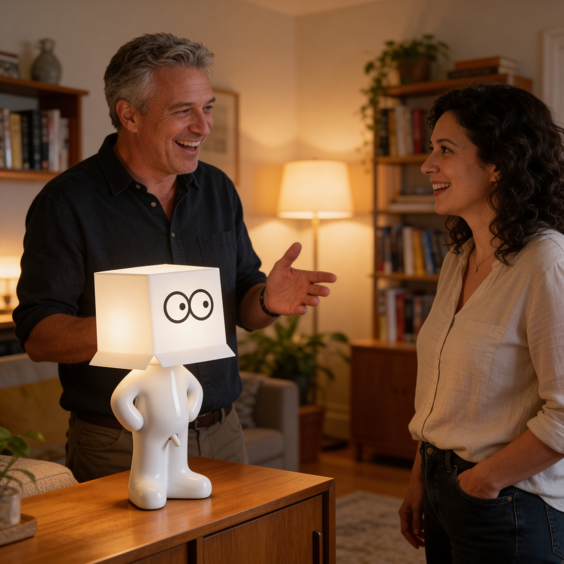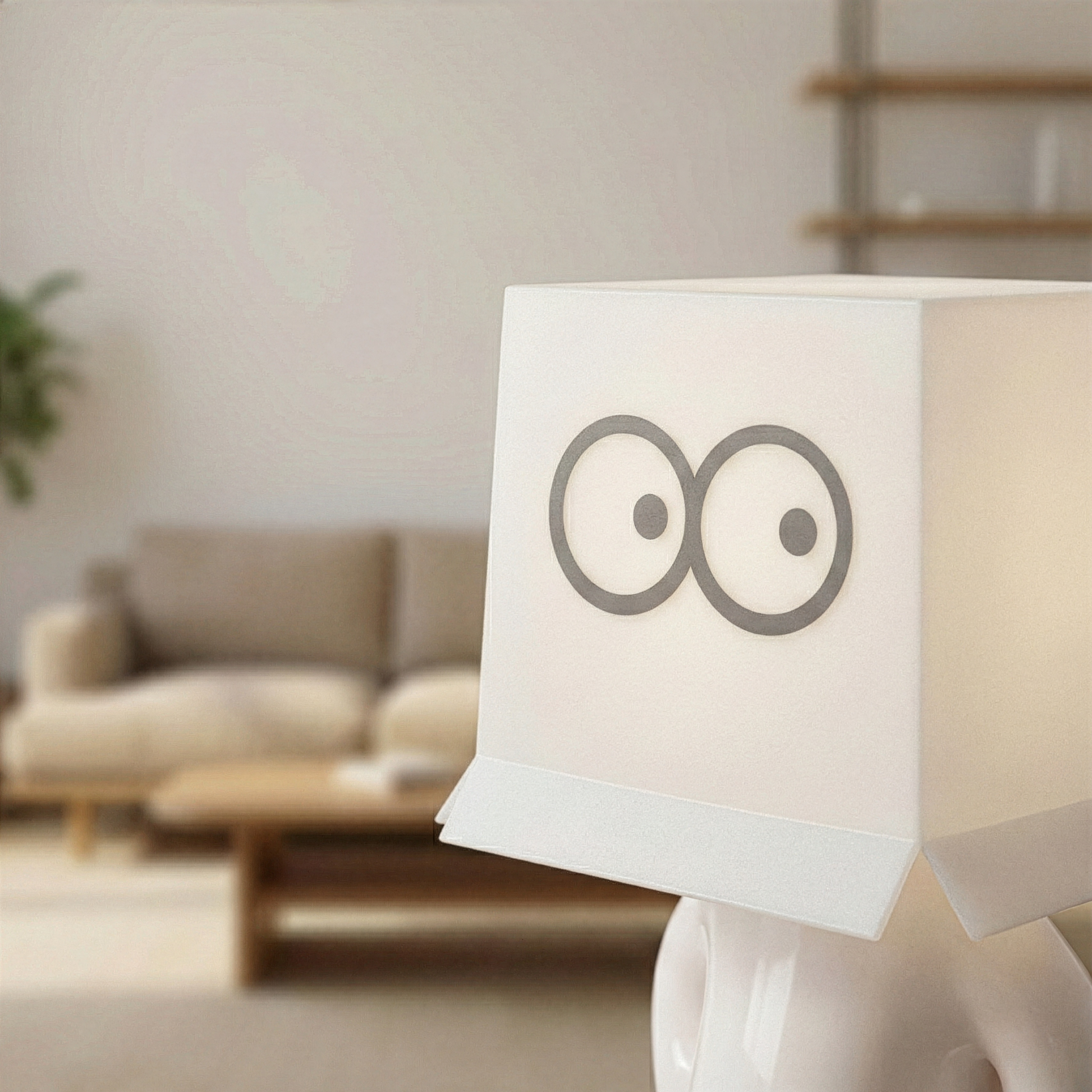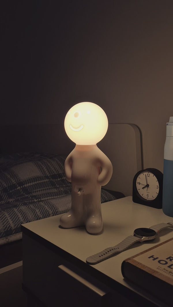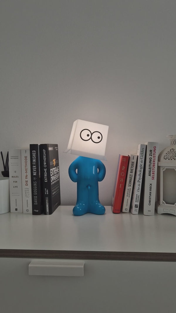 Larry the Lamp uses an energy-efficient, built-in LED unit that produces a pleasant, warm light — ideal for living rooms, bedrooms, or offices.