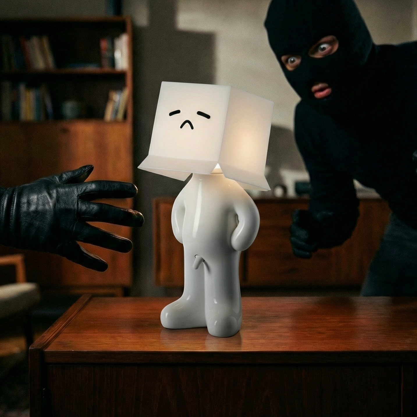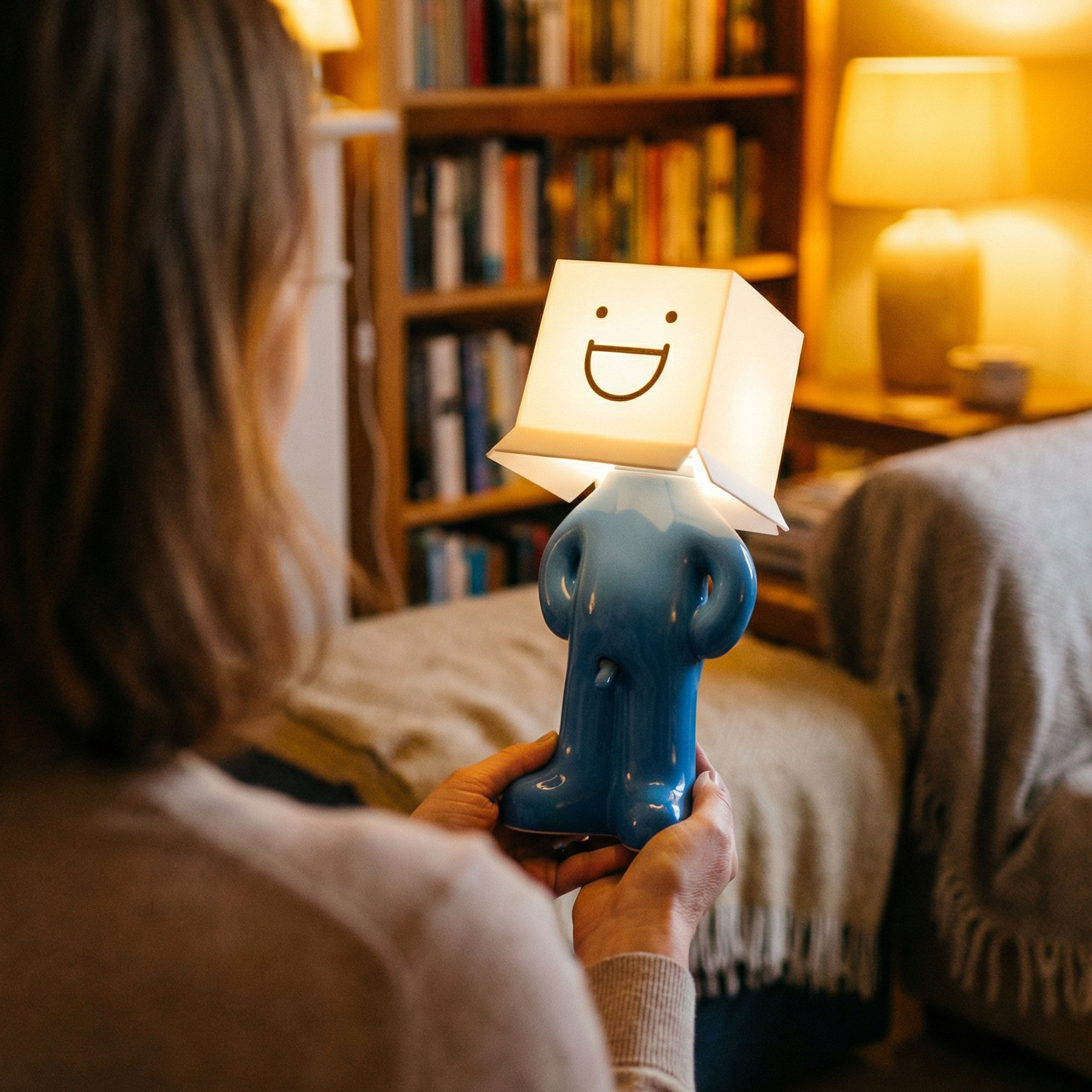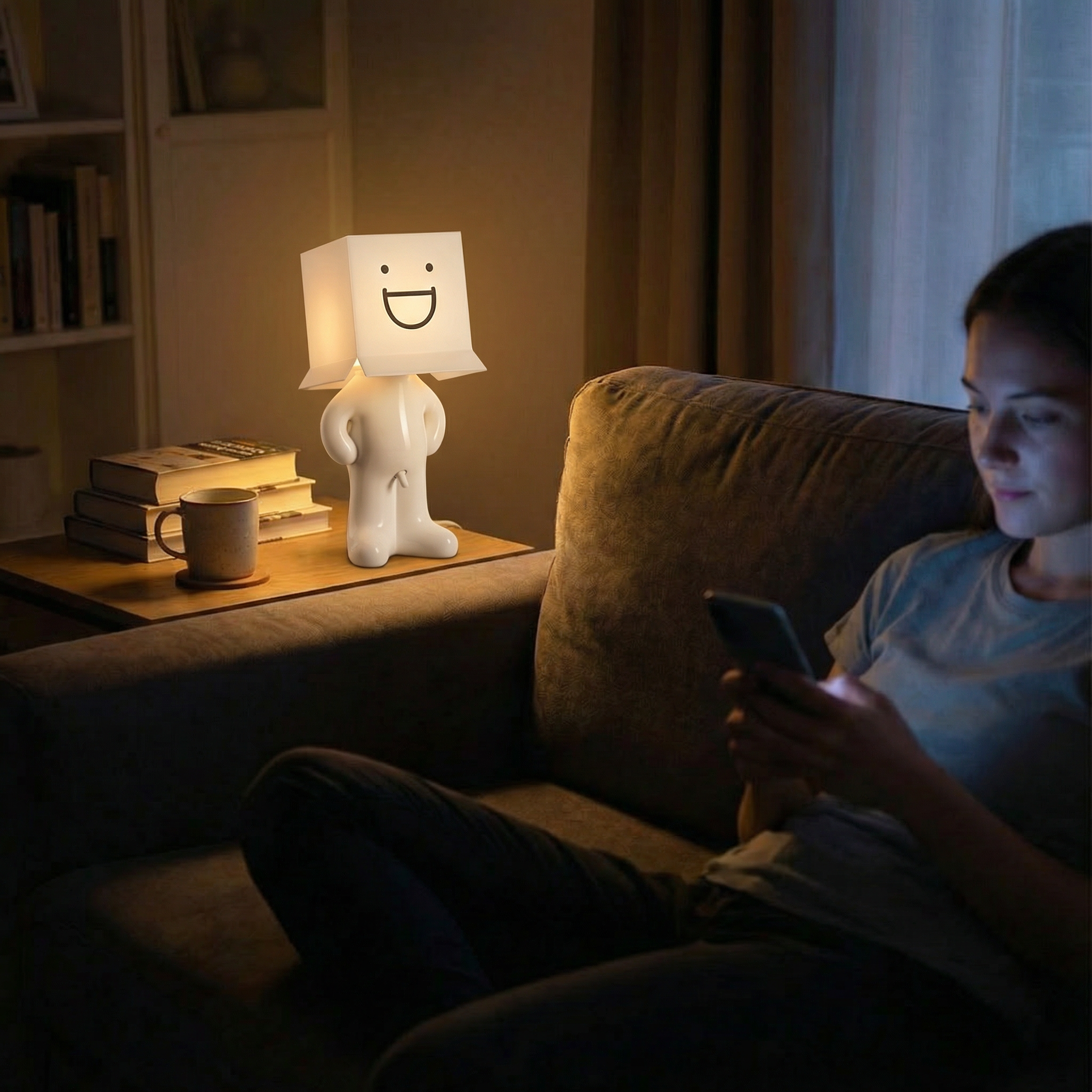 Larry the Lamp uses an energy-efficient, built-in LED unit that produces a pleasant, warm light — ideal for living rooms, bedrooms, or offices.