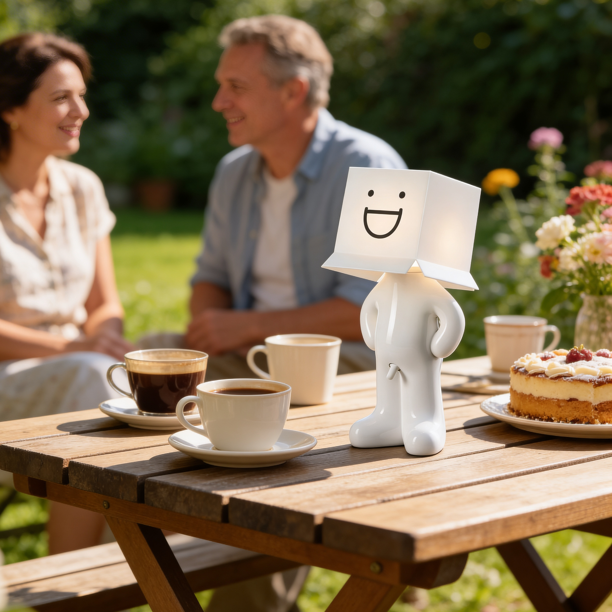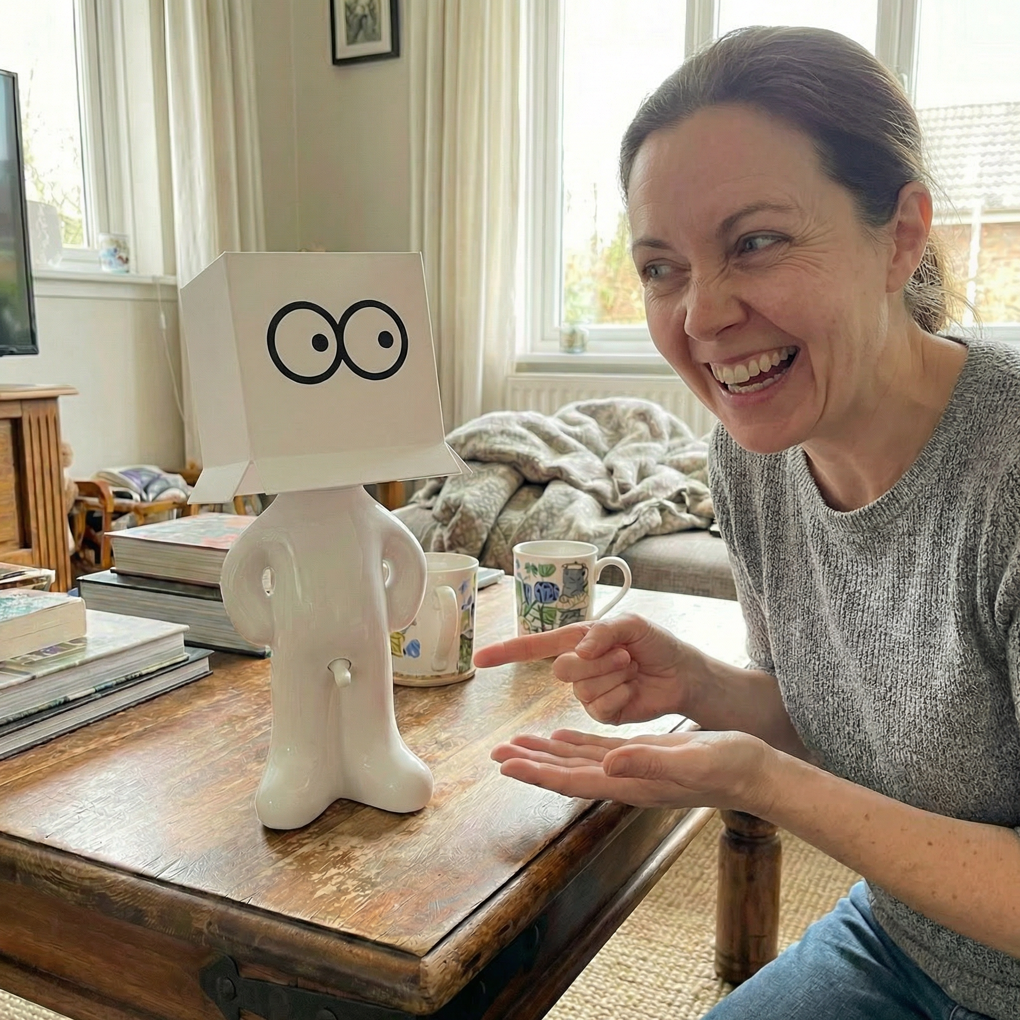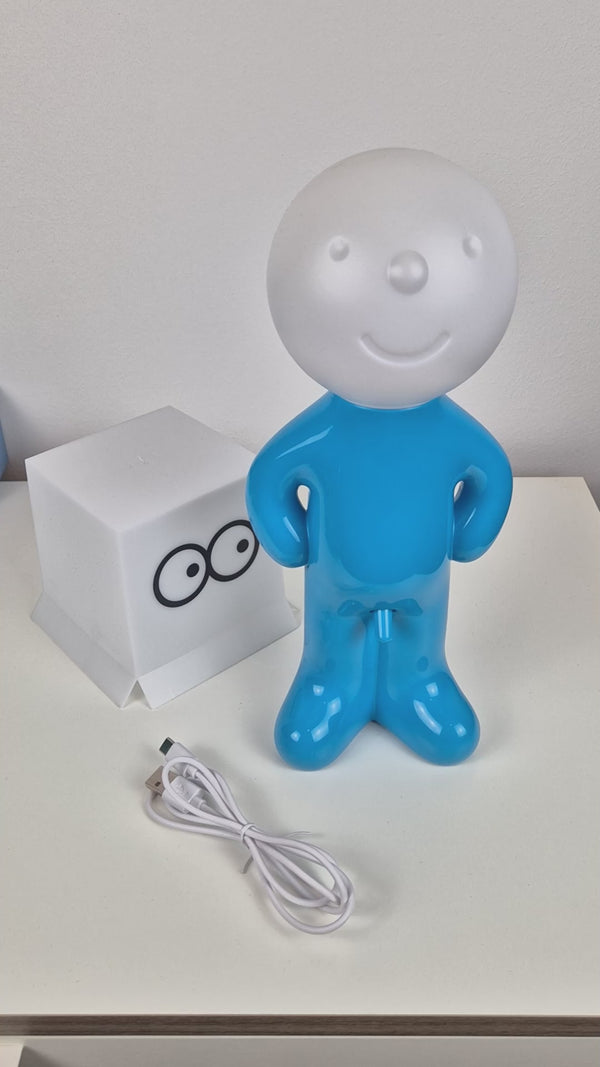 Important: Larry the Lamp has a built-in rechargeable battery and is charged via USB-C. No direct mains power is required, and no batteries are needed.